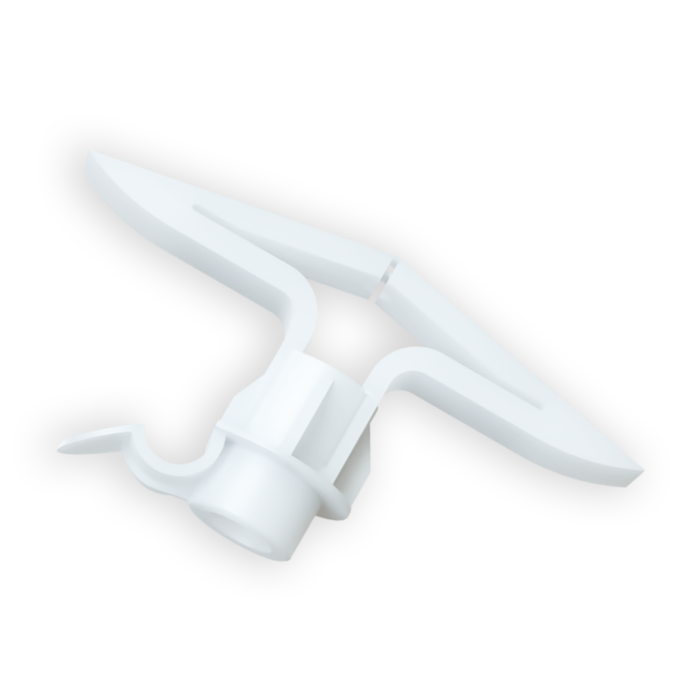 Druk met de bijgeleverde rode pin de vleugels open. Niet hameren!