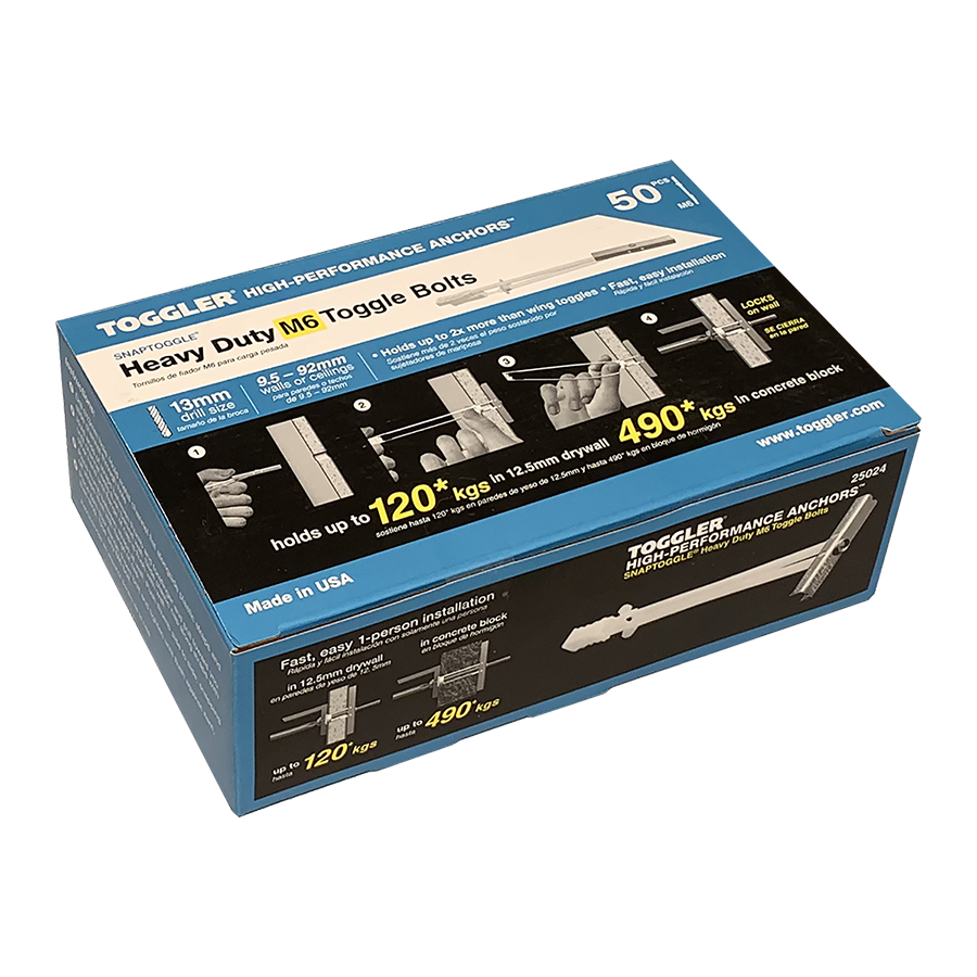 Het Toggler Hollewandanker M6 is geschikt voor het bevestigen van voorwerpen aan holle wand, plafond, 5 cm dik cellenbeton en plaatmateriaal, zoals gipsplaat van 9,5 of 12,5 mm dik. Monteer het anker snel en eenvoudig met behulp van de montagestrips. Je hebt hiervoor geen extra gereedschap nodig. Is de ruimte achter de plaat groter dan 52 mm? Dan past het Hollewandanker altijd. Het anker heeft door het grote draagvlak achter de plaat een ijzersterke houvast.